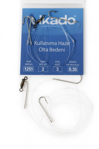 İkado 1251 Hazır Olta Bedeni, 3 keskin iğne ve 1 fırdöndü ile paketten çıkar çıkmaz kullanıma hazırdır. 0,35 mm misinası sayesinde dayanıklı ve uzun ömürlüdür; kıyı ve tekne avcılığında idealdir.